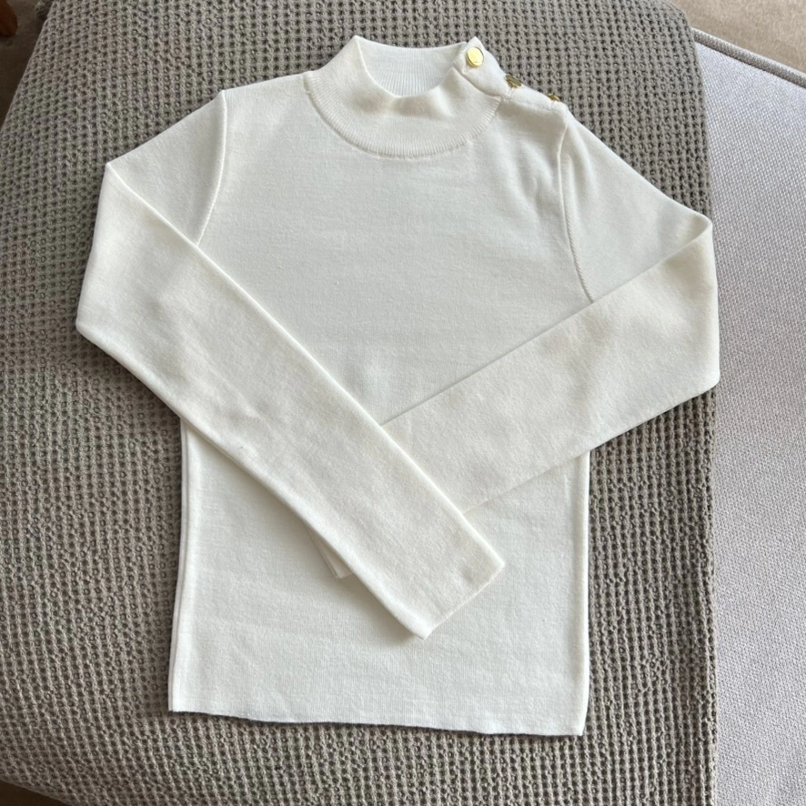 Sweater tejido con hilado Bremer doble cavo c/ abertura de botones dorados LISOS.