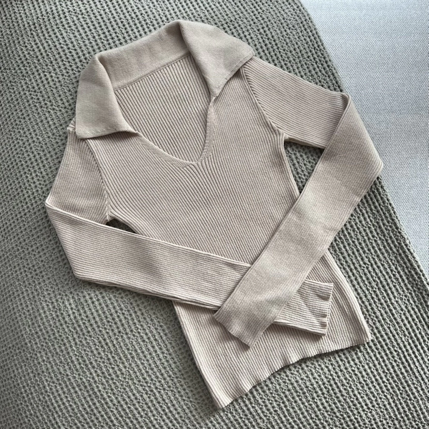 Sweater tejido con hilado Bremer morley con cuello camisa, escote v.